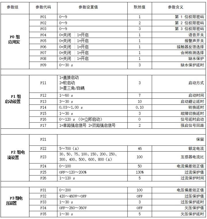 提示:該參數的調節能改善在降壓啟動完畢后轉換到全壓運行時斷路器有可能出現跳閘現象! 如改變此參數還會出現短路器跳閘現象,請將短路器改為 3200 型